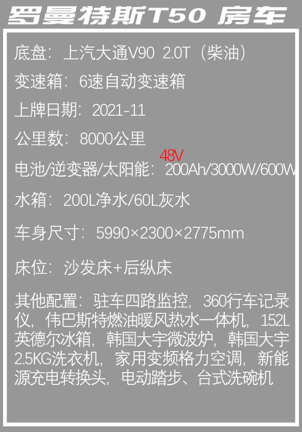 【新到准新二手房车】——罗曼特斯T50小额头房车
