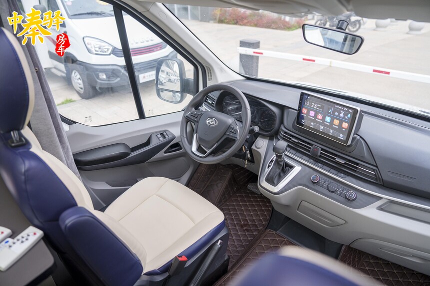 进入驾驶室内,主副驾驶座椅采用拼色设计,触感细腻,乘坐感更加舒适,可以缓解长途驾驶的疲劳感,布艺的设计透气性更加强,夏天使用最为明显。在驾驶辅助方面,里面标配了多功能方向盘、手机互联大屏、定速巡航、ESP9.0定速巡航、倒车雷达、倒车影像等,全方位为车友的出行保驾护航,伴您安心出行。驾驶室和生活区采用贯通式设计,方便乘客进出,并配置有隐私帘,保证乘客有个私密的空间。