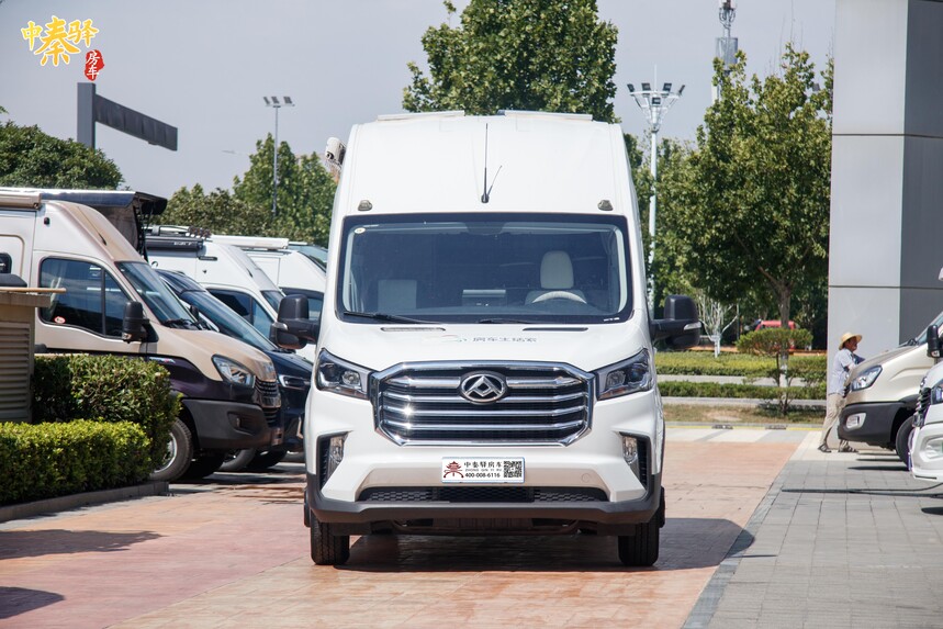 外观以白色为底色,车侧勾勒红、灰色拉花, 赋予清新有活力的整体质感。车身尺寸为5940×2110×2830mm,轴距为3760mm,车长不足6m,蓝牌C照即可驾驶。整车基于上汽大通V90底盘打造,动力方面,本车搭载2.0T柴油发动机,匹配6AT法国邦奇变速箱,后驱后双胎驱动形式,发动机最大功率为110kW,最大扭矩为375N·m,带来充沛的动力输出,满足国六排放标准。油箱容积为80L。