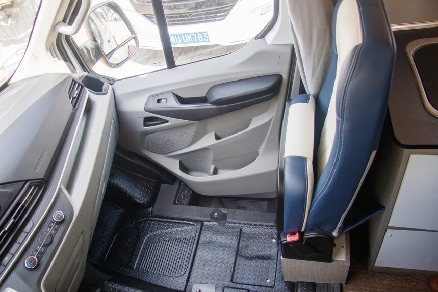 驾驶室的装饰采用白色加上橙色座椅显得十分商务有档次,座椅可多项调节,并配有预警式安全带和安全气囊。驾驶室配有隐私帘,可以保障车内隐私。驾驶辅助方面,这款车配备丰富,配有ABS+EBD+BAS、ESP车身稳定系统、电动带加热外后视镜、上坡辅助、定速巡航、倒车雷达,让车主驾驶更加轻松省力。