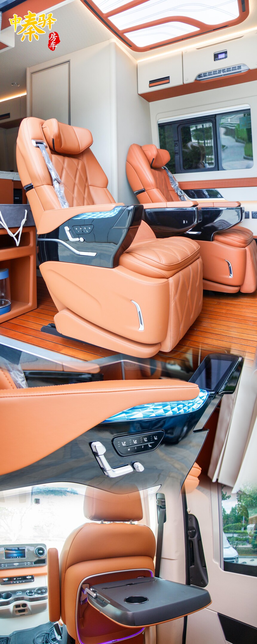 霸气的外观,豪华的内饰,古朴淡雅,举手投足间都是高贵。后排采用筑梦师第二代航空座椅,摒弃机械开关,采用触摸屏调节座椅,实现【解放双手】,座椅有通风,加热,按摩等功能,兼顾宽敞空间与优越的乘坐舒适性,无论是商务接待还是携全家出游,都能更好的照顾每一位乘客。采用了12V直流变频空调作为制冷设备,省电静音制冷量大。