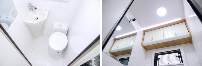 厨房区域配置相当齐全,配备有电磁炉、微波炉等。120L弗罗斯特房车专用冰箱能够储存足够的食物,满足长途旅行需求。储物空间也是非常的丰富再也不怕锅碗瓢盆给哪里放了。